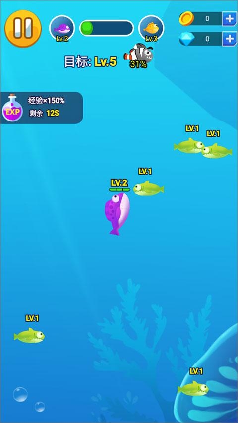 2、从不起眼的小鱼逐渐进化去实现华丽蜕变,玩家也是能够自己去挑战的。