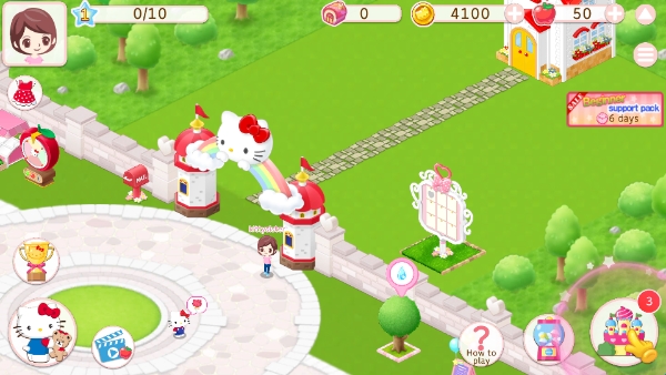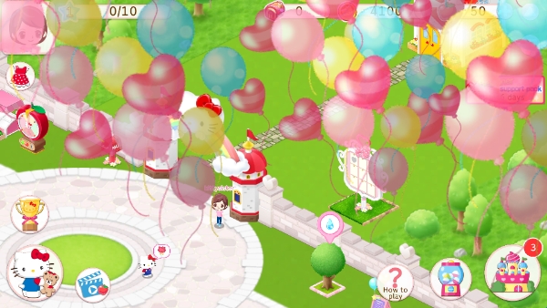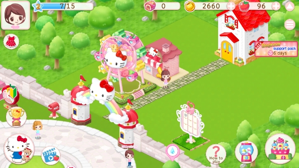 3、进入游戏开始建造凯蒂猫世界的游乐园。