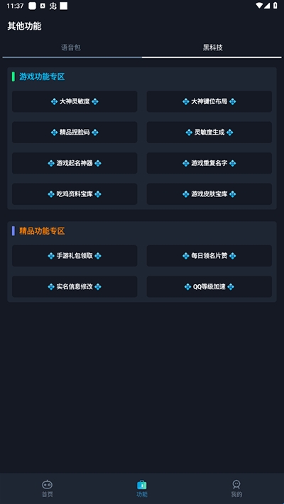 3、除此之外,点击其他功能,里面有语音包和一些黑科技可供大家使用。