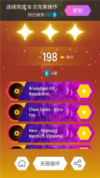 2、震撼的3D视觉效果:游戏采用了高质量的3D图形设计,创造出绚丽多彩的游戏环境和动态效果。随着音乐节奏的变化,游戏场景也会相应变换,为玩家提供沉浸式的视觉体验,仿佛置身于一场华丽的音乐盛宴之中。