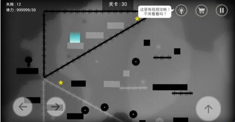 1、屏幕地下为左右行走操作键,右边卫跳跃键,拿到三颗星后到达终点为通关。