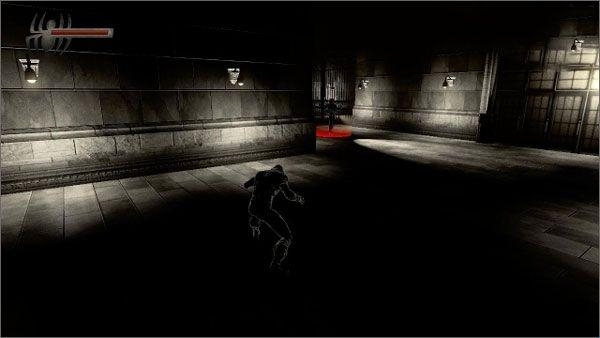 7、最后我们使用过去的蜘蛛侠,潜入型的。一开始按照提示按B暗“杀”第一个敌人,然后按十字键上键找到碎片位置,然后可以自由行动了。从阴影里行动,只要背对我们的敌人就可以按B暗杀。