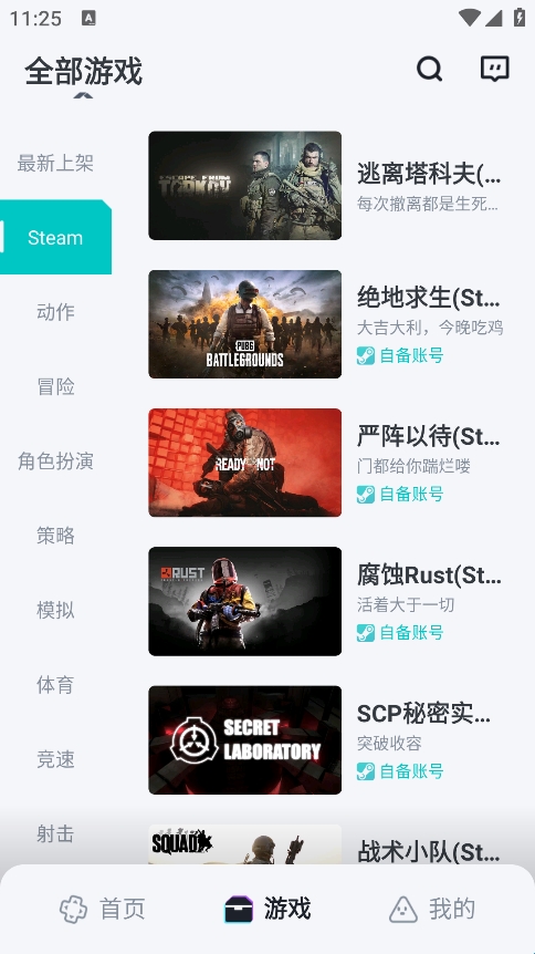 3、游戏栏目将云游戏进行了详细的归类。