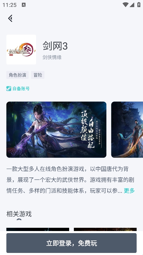 5、点开想玩的游戏进入详情页,点击“立即登录,免费玩”即可。