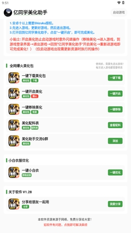 亿同学美化助手是一款能够对画质进行极致优化的辅助软件。用户可以通过软件享受到超高清120帧的游戏体验,将游戏画面质量提高到一个全新的水平,还能够同时提高帧数,让游戏变得更加流畅,如果你也想享受更加清晰、流畅的游戏体验,那就快来下载试试吧。