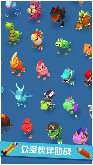 1、多样的史前萌物:游戏中包含骷骨龙、涡轮龟、金刚、老剑龙等多种史前萌物,与玩家一同冒险。