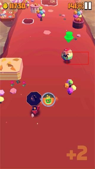 3、在跑酷的过程中我们要躲过各种障碍,除了障碍还有糖果和金币、恐龙蛋等,这些可以去捡;