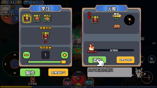 5、到背包中点击仅有的食物点击添加进行火烤烹饪,即可使用。