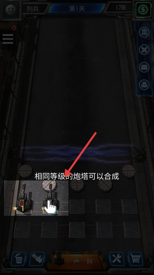 2、通过合成相同炮塔提升武器威力等级。