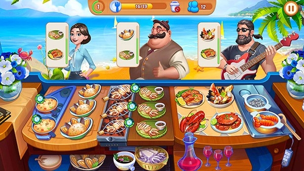 4、不但有不同的美丽菜肴,还有很多的顾客以及华丽的服装,这些都让游戏的精彩程度大大提升,深深的吸引了玩家