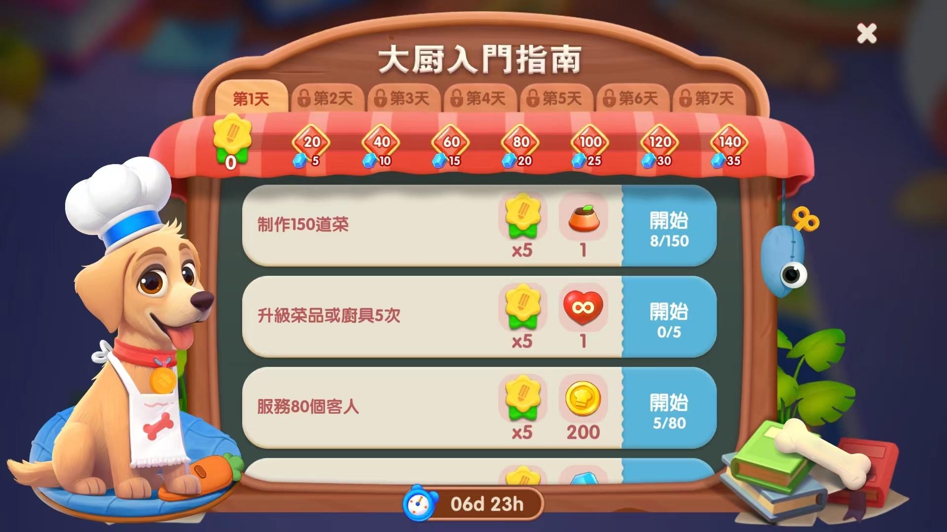 1、完成对应着的关卡任务,解决顾客们的用餐需求。