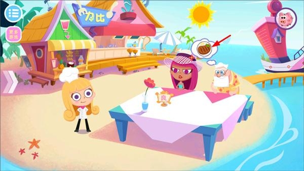 1、在游戏中需要能够首先去点击船上的那些角色,这样角色才会走下来并且在桌子上要求我们提供不同的食物,这样玩家们就要注意不同客人的不同要求了,完成之后才能够获得奖励。