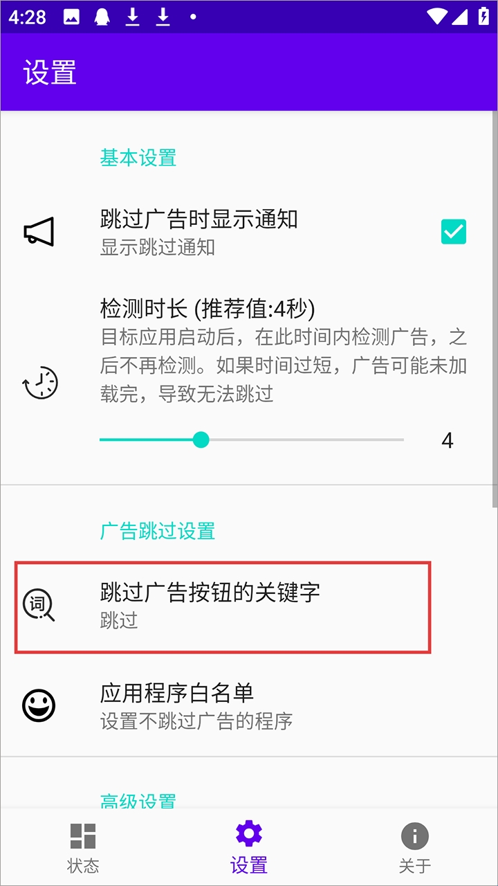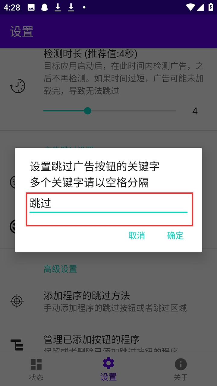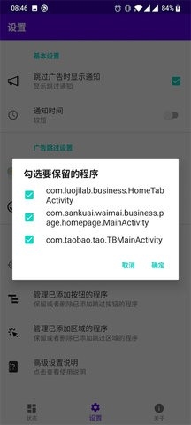 默认情况,开屏广告会监控界面中出现“跳过”字样的按钮,因为一般的开屏广告都有一个“跳过”按钮,软件只需要检测到这个跳过,然后自动帮我们点击即可。