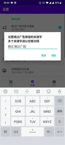 如果你发现某个APP比较奇葩,你可以手动指定关键词,多个关键词空格分割即可。