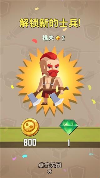 1、总体来说,游戏难度不是特别大,主要通过召唤从绳索中下落的士兵来守护部落的和平,通过击杀入侵的敌人和BOSS获取收益,期间指挥官升级也能够带来大量的金币,而且招募系统也配备了大量的高端英雄,可以利用钻石直接招募,省去了繁琐的合成过程。
