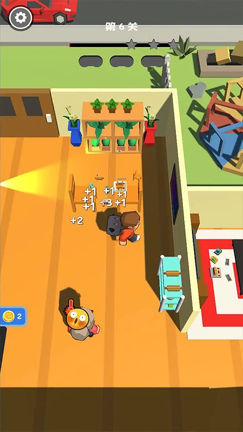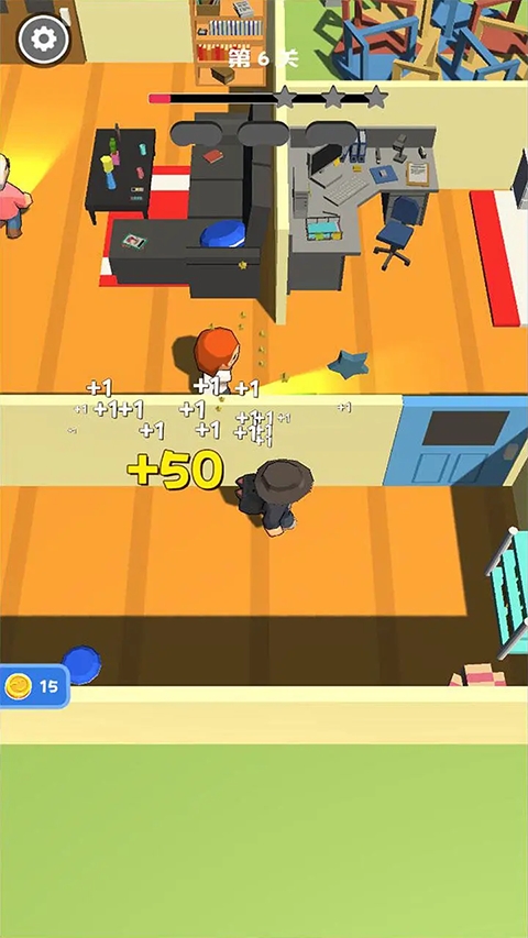 4、游戏中玩家需要收集房间中的物品,玩家可以看游戏上方的进度条,每收集一个物品都会增加一点进度,玩家可以立即上车或者收集到三星在上车;