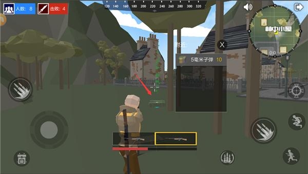 13、游戏中左边为开火、背包键位,右边为瞄准镜、跳跃、奔跑、换子弹;