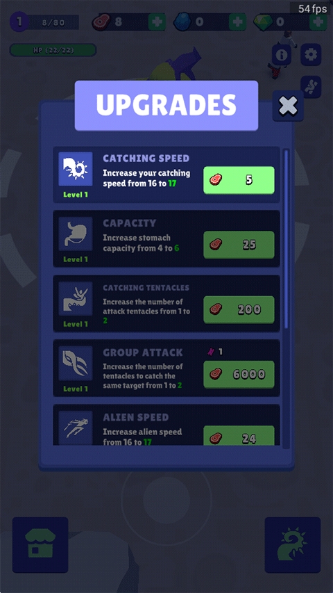 5、通过消耗获取的食物可以增强自己的各项能力。
