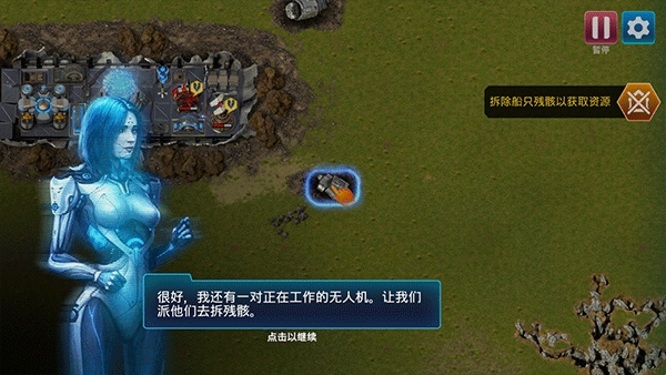 3、进入游戏时,首先派遣无人机去拆除残骸,来获得资源。
