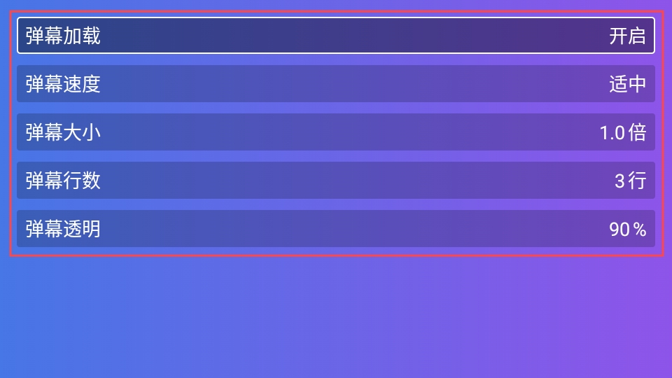 3、然后就可以自定义调整弹幕速度,,大小,行数以及透明度等相关参数了。