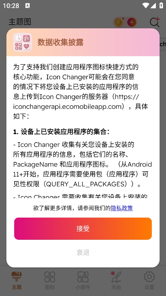 ThemePik:图标更换器是一款可以自由更换图标的软件。软件中有海量的应用图标可以更换,还有不同主题的套装图标可以下载使用,并且,软件还支持用户自定义DIY手机上的应用图标,使用自己的相册照片创建新的图标和小部件,喜欢的用户可以来下载体验哦。