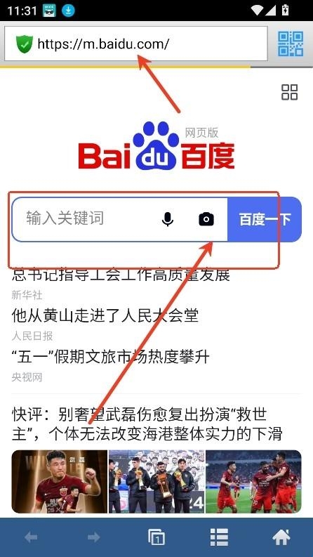 2、进入首页后,可以直接搜索框输入关键词,或者上方输入网址等