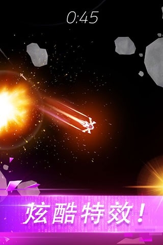 1、通过触摸屏幕左右两侧的不同区域,灵活控制飞船的飞行方向与移动轨迹。
