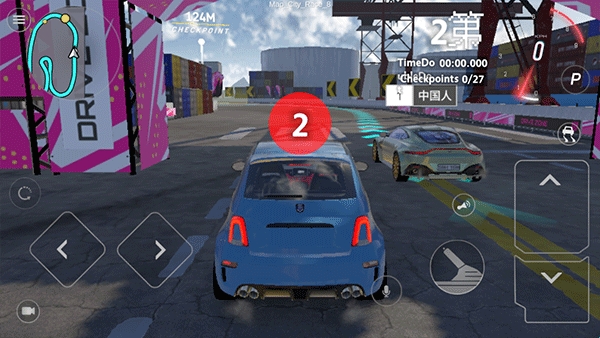 3、游戏的操作非常简单,与经典的赛车游戏类似,左边控制方向,右边控制油门、刹车、倒车等等;