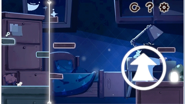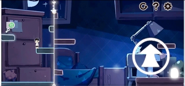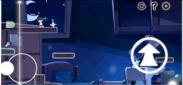 4、屏幕左侧控制人物移动,右边的箭头控制人物跳跃,发光的线可以控制空间的变化
