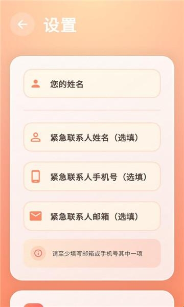 1、先按照软件要求,填写紧急联系人姓名以及联系方式