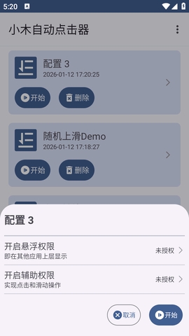 二、授予权限请根据操作提示授权小木自动点击器使用以下权限(安全提示:本应用为单机离线版,您的敏感信息不会在网络传输)