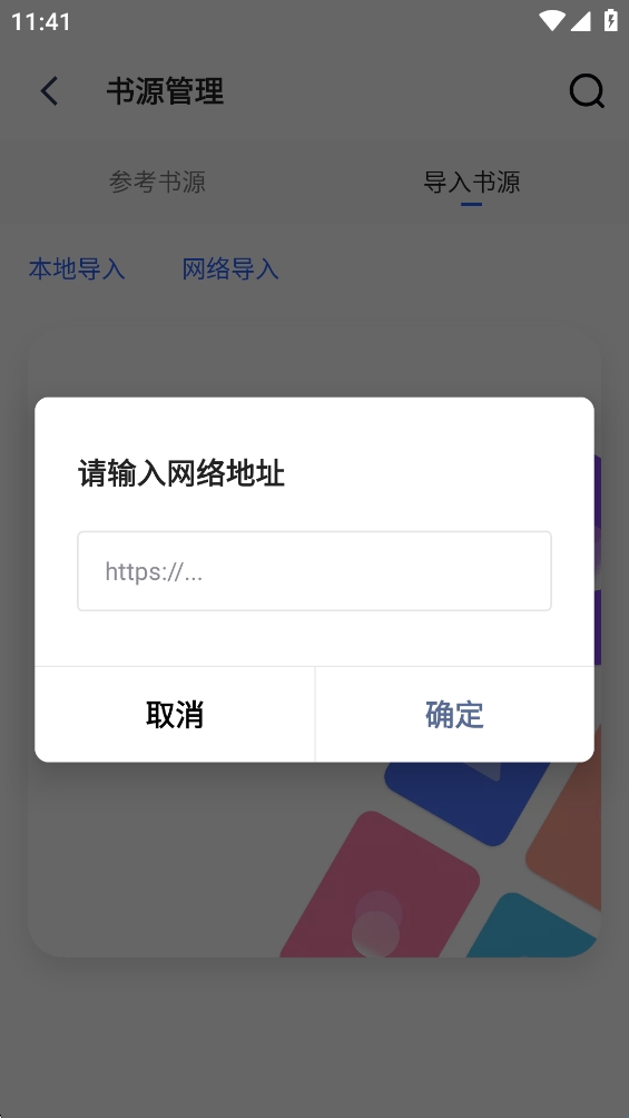5、点击网络导入输入链接即可确认抓取书源了。