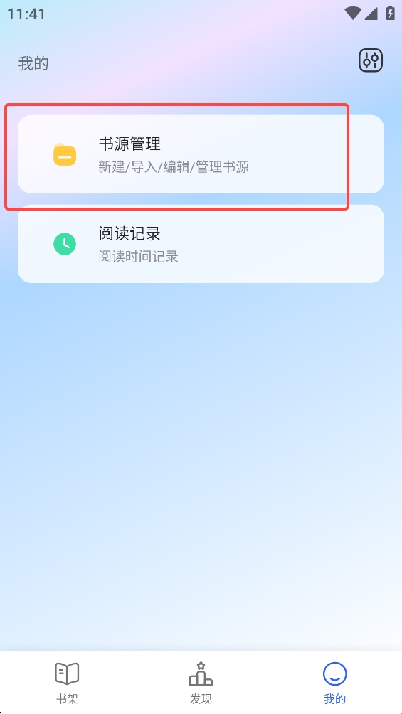 2、在菜单中找到【书源管理】。