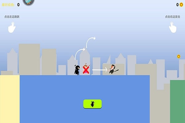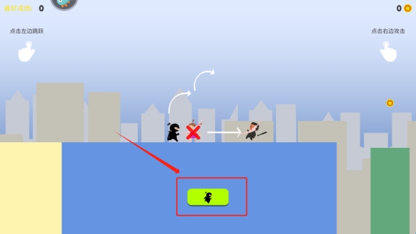 4、点击左边屏幕即可跳跃,最多可进行二连跳,在遇到小女孩时使用二段跳避开,遇见敌人时点击右边屏幕进行攻击。