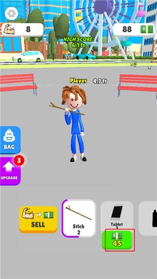 4、用钞票解锁其他物品,举重树枝显示肌肉加2;