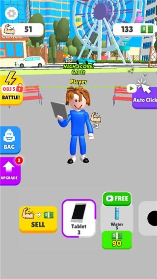 5、玩家控制游戏人物收集哑铃片,收集的哑铃片越多人物就会越强壮。