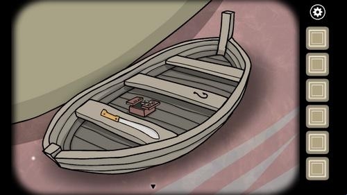 1、调查来时的船,在船上找到弯刀和鱼钩,在木板底下的小盒子里找到线。