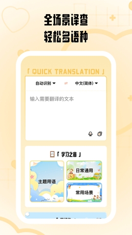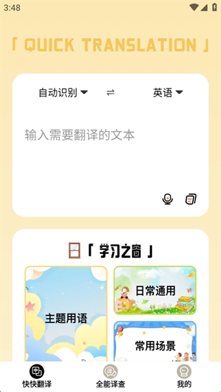 1、支持输入文本翻译,能够自动识别并翻译成目标语言;
