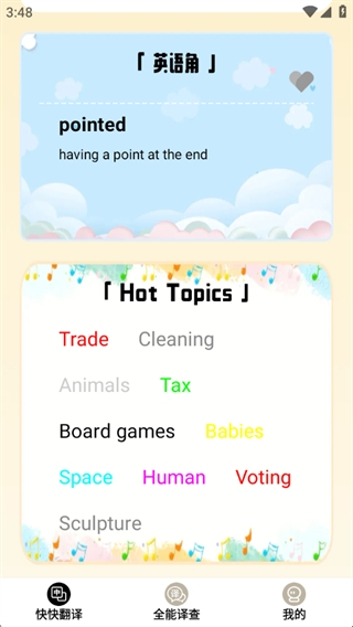 快快翻译是一款功能强大的手机翻译软件。软件提供语音翻译、拍照翻译、文本翻译等多种模式,操作简单,还支持离线翻译功能,可以很好的满足用户对于翻译的各种需求,可自动识别语种,翻译准确率高,是非常棒的一款翻译软件,有需要的用户可以来下载。