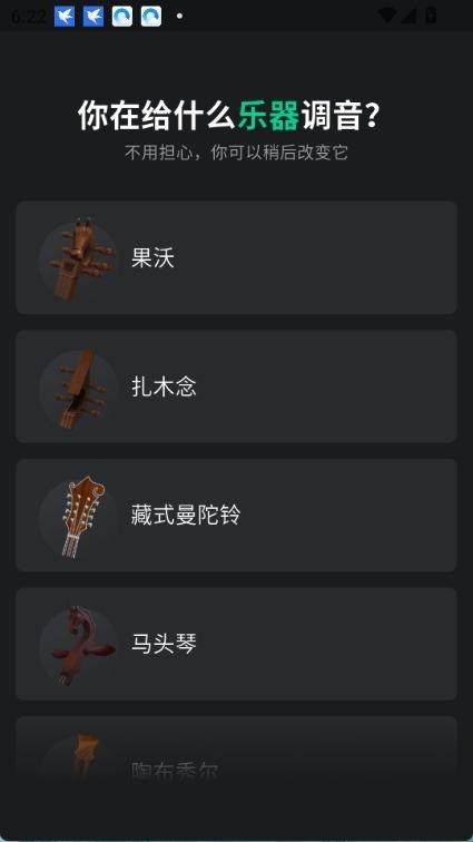 1、打开雪怪调音器app,首先选择自己要调音的乐器