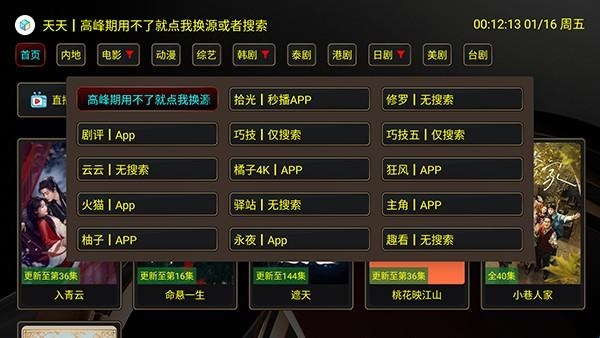 2、在高峰时间端如果卡顿可以点击左上角的影视源进行切换,直接选择需要的影视源使用即可。