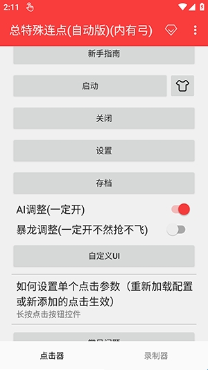 总特殊连点器是一款提供多种连点方式的自动点击辅助软件。软件支持多点操作,为用户提供特殊的多点触屏操作,用户可以根据自己的需求来设置需要的点击模式,设置点击的时间和屏幕方位以及点击次数,帮助用户减少用户重复操作疲劳,满足多种用户需求。
