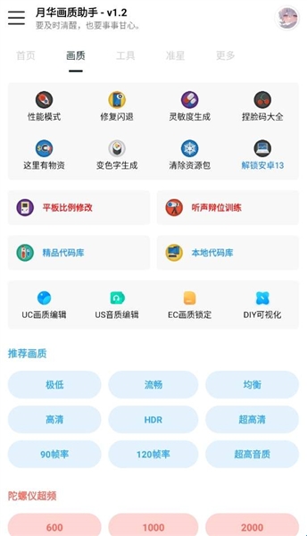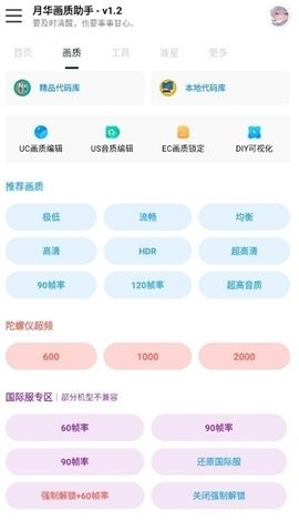 月华画质助手是一款可以帮助用户更改游戏画质图像的辅助工具。软件中提供了多种画质选项和美化资源,提供画质修改、帧率调节等功能,并且还支持120帧的画质切换,对于用户的手机也没有任何的限制,可以很好的满足不同玩家的需求。