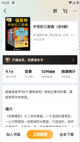 3、在书籍详情页点击"听"按钮就可以进入开启听书体验。
