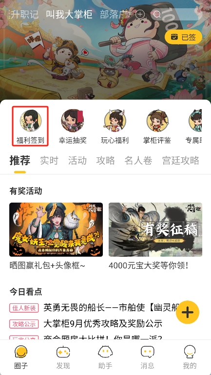 4、在所在的圈子点击功能中的“福利签到”选项,以此进入到签到页面中。