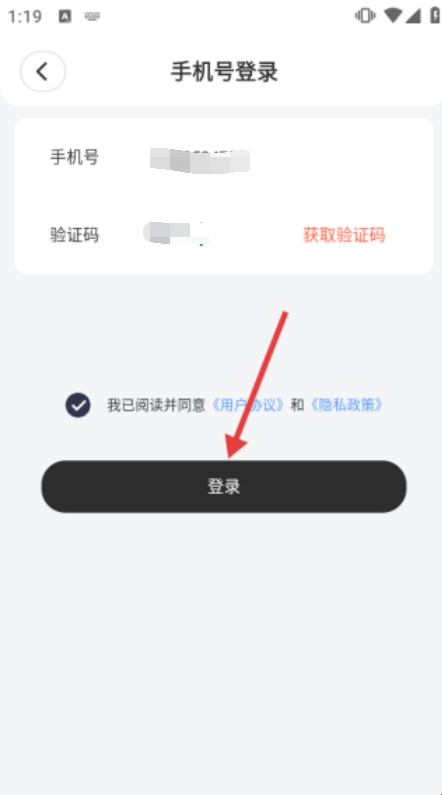 3、勾选协议后,点击【登录】按钮完成手机登录操作。