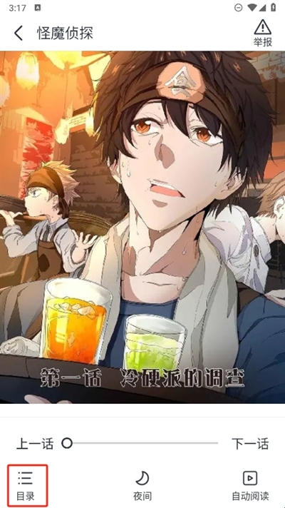 2、点击进入后就能够直接进行观看,点击画面正中间弹出功能弹窗我们可以看到目录功能;