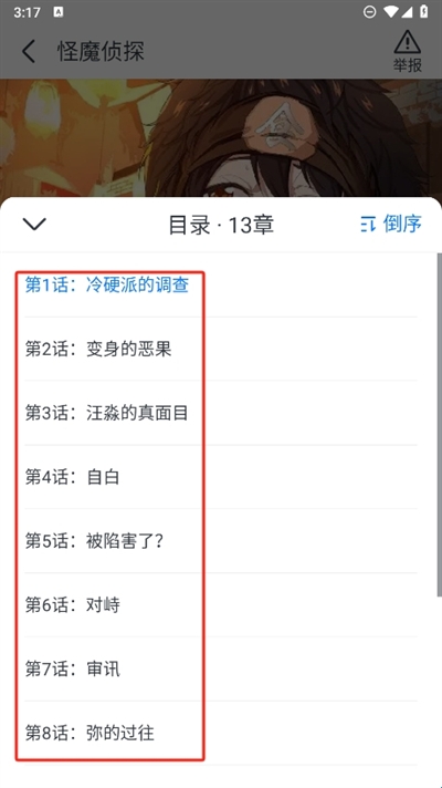 3、在这里就可以自己选择想要观看的章节,点击即可自动进行漫画页面的一键跳转;