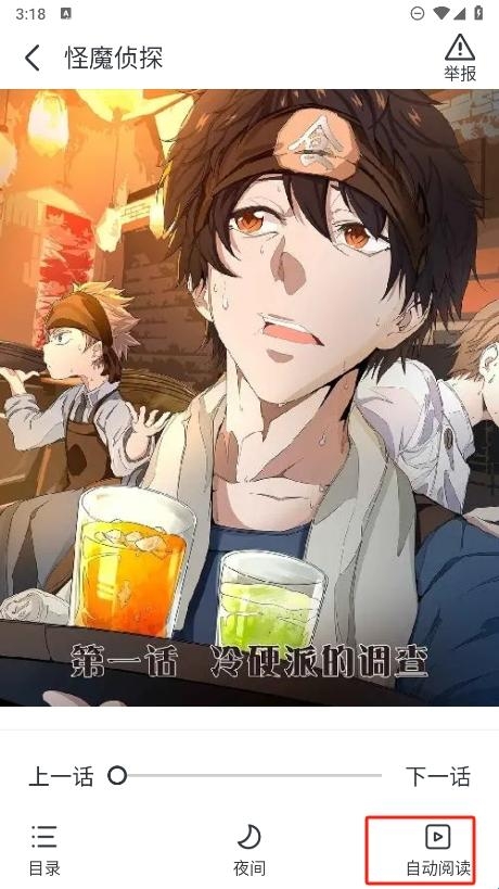 4、并且还在观看上为了能够放松自己需要手拿的方式,可以点击自动阅读将会自动滑动进行观看。