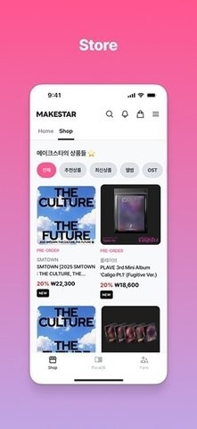 此外,通过“shop”页面,用户可以方便地挑选自己偶像的各种周边商品。